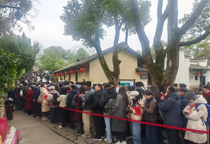 正值春节假期出游高峰,韶山核心景区游客量持续增长。截至下午5时,韶山毛泽东同志纪念馆当日预约参观人数达4.5万人,毛泽东同志故居预约参观人数1.7万余人。面对客流高峰,省韶山管理局、韶山市、韶旅集团三方联勤值守,以科学管理、暖心服务保障游客游览体验,确保景区运行平安稳定有序。热门景点毛泽东同志故居,高峰时期排队时长约50分钟,游客可选择错峰出行,或参观故居外景。