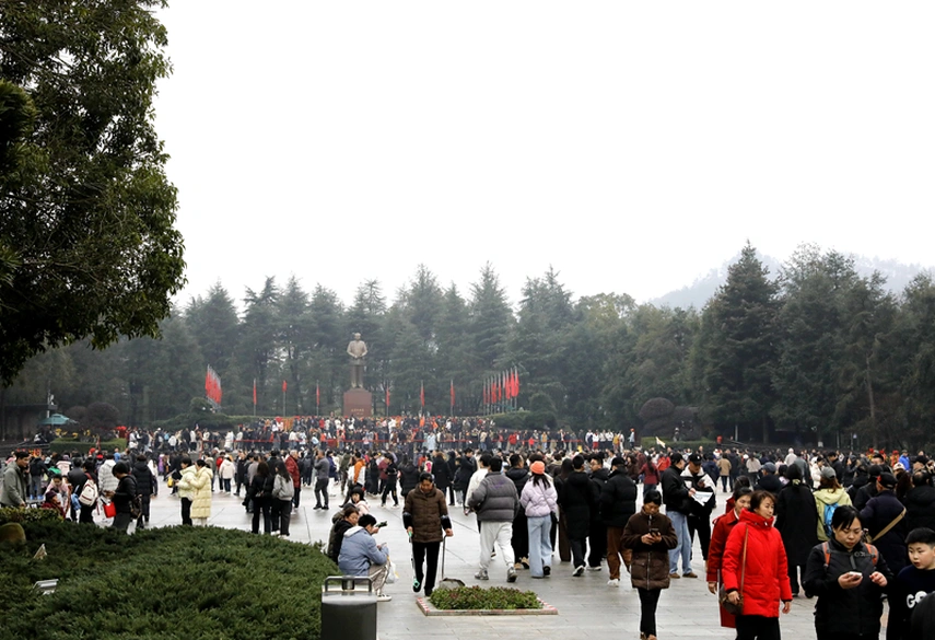 2月18日,农历正月初二,暖阳照耀下的韶山冲到处洋溢着喜庆祥和的节日气氛。作为全国人民心驰神往的红色圣地,韶山核心景区在今天迎来了春节假期的首波游客小高峰。来自五湖四海的游客们带着对新年的美好期许,齐聚伟人故里,在追寻红色足迹中感受别样年味。