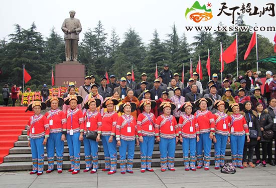 云南边疆少数民族中老年舞蹈团队瞻仰主席铜像合影留念 罗华 摄