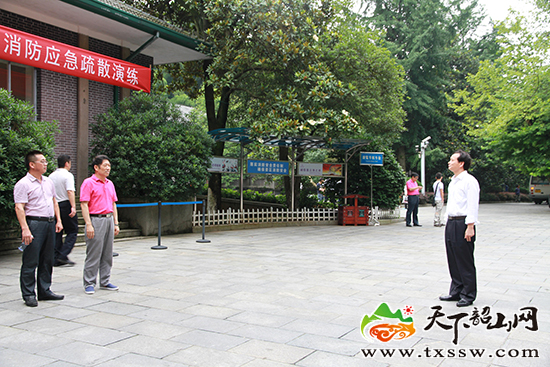 文章来源:天下韶山网 作者:邹柳 时间:2014-06-25 12:03:05湖南省韶山管理局副局长刘元美向总指挥长毛俊雄下达“演练开始”命令 邹柳 摄