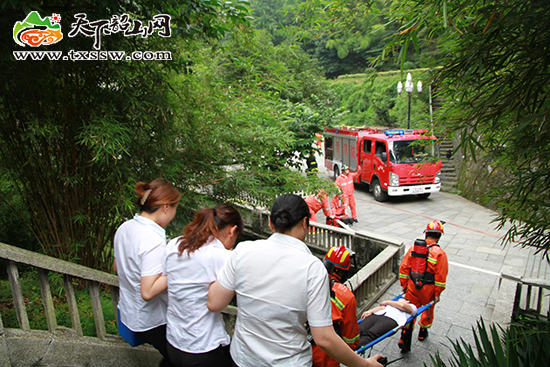 天下韶山网讯(通讯员 邹柳)为配合好韶山市创建文明城市活动,积极贯彻落实“预防为主,防消结合”的消防工作方针,全面检验韶山宾馆员工及义务消防队员对突发应急事件的应对能力,6月24日下午,韶山宾馆在滴水洞景区组织开展应急消防疏散演练。