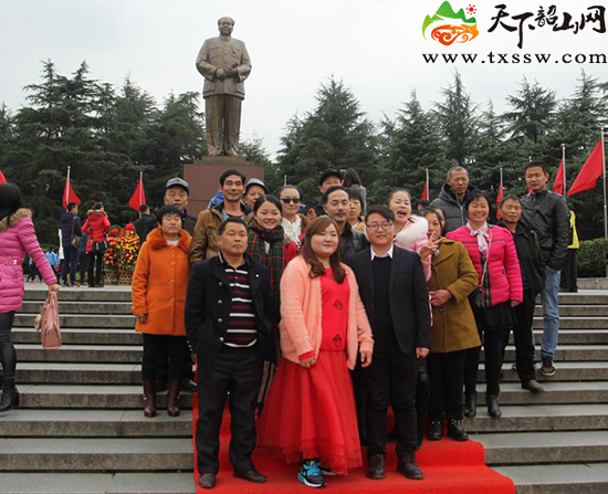 文章来源:天下韶山网 作者:赵鹏 时间:2015-12-08 11:06:05新人及其家属在毛主席铜像前合影 赵鹏 摄
