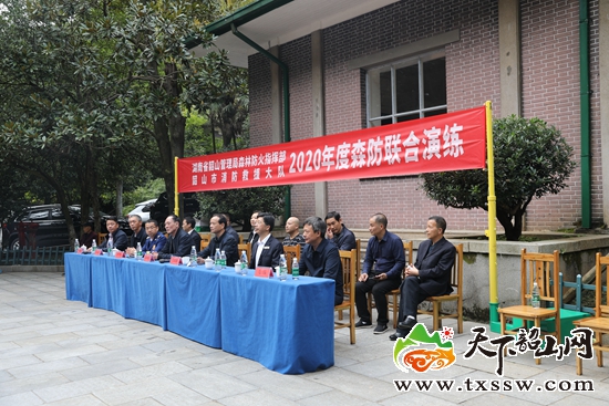 省韶山管理局二级巡视员萧国梁、韶山市消防救援大队负责人、局机关和局属单位相关负责人现场观摩了此次森防联合演练。