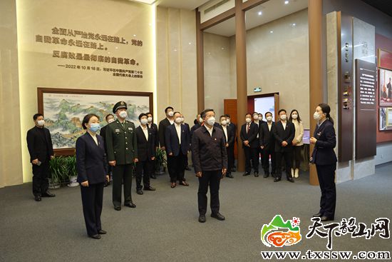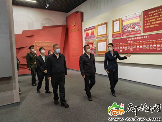 中共益阳市委书记瞿海(前排中)一行参观“胜利的密码——毛泽东与反腐倡廉”专题展